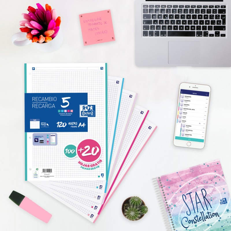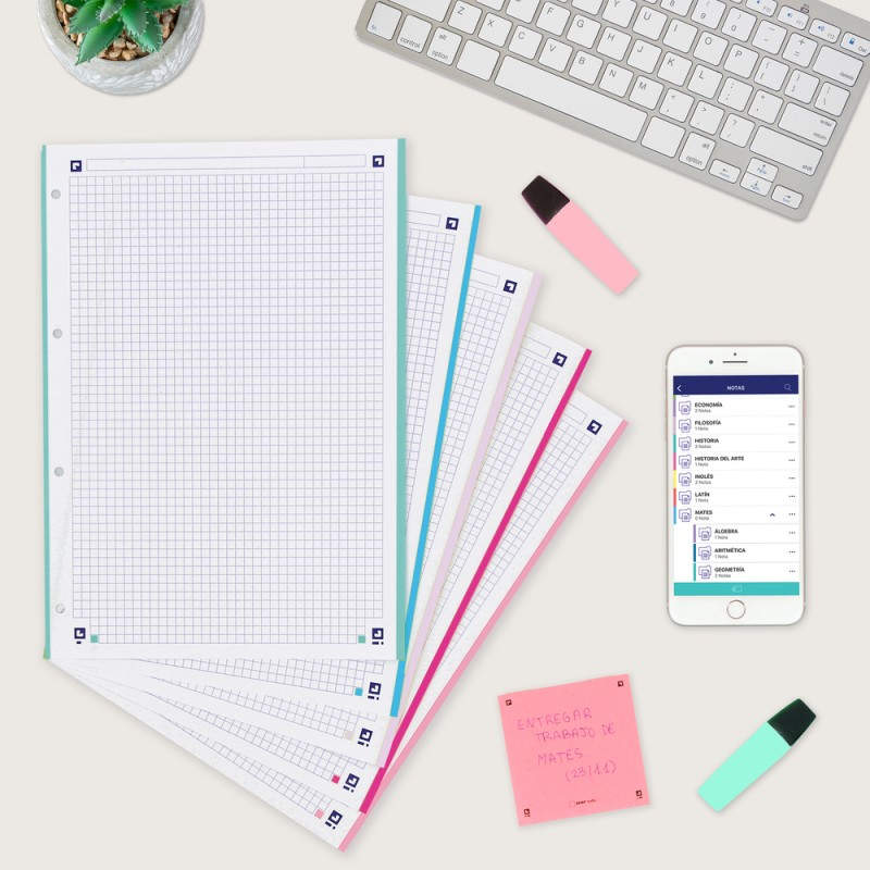 Características Color del producto --> Colores surtidos Cantidad de hojas --> 120 hojas Tipo de papel rayado --> Papel cuadriculado Formato --> A4 Peso de media --> 90 g/m²