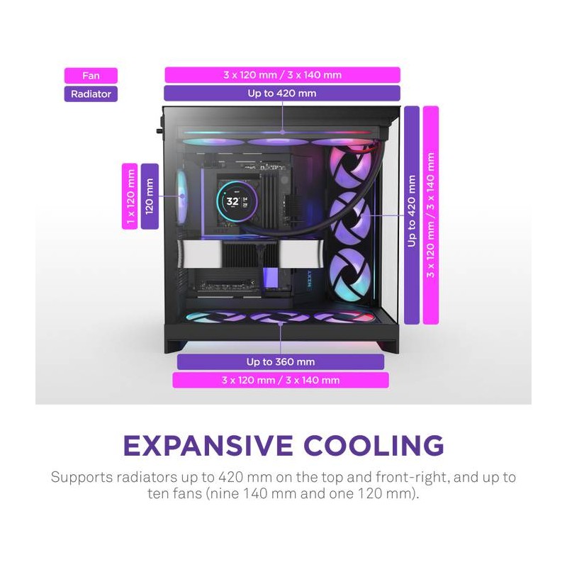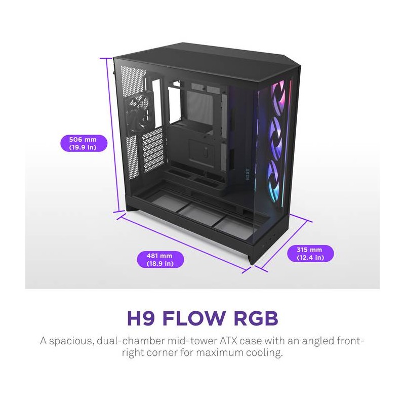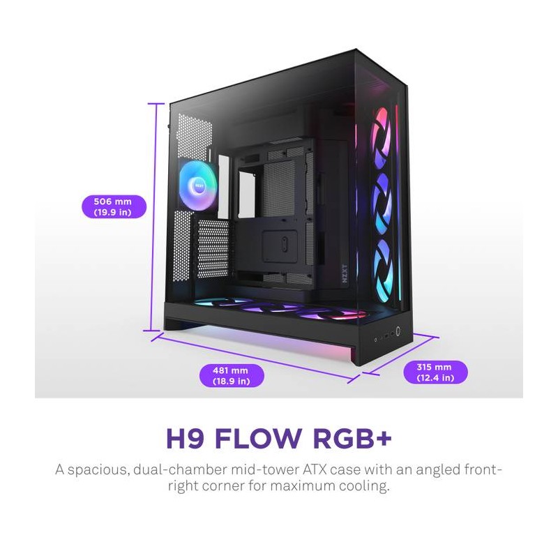 NZXT - NZXT H9 Flow RGB+ Midi Tower Negro - cm-h92fb-p1
