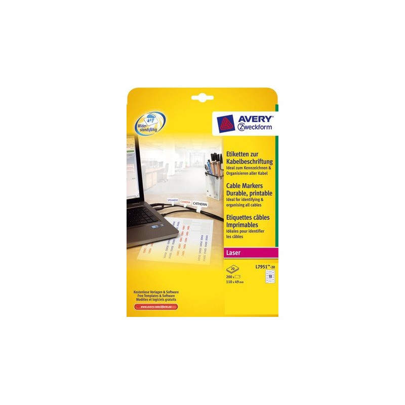 Avery L7951-20 etiqueta autoadhesiva Blanco 200 pieza(s)