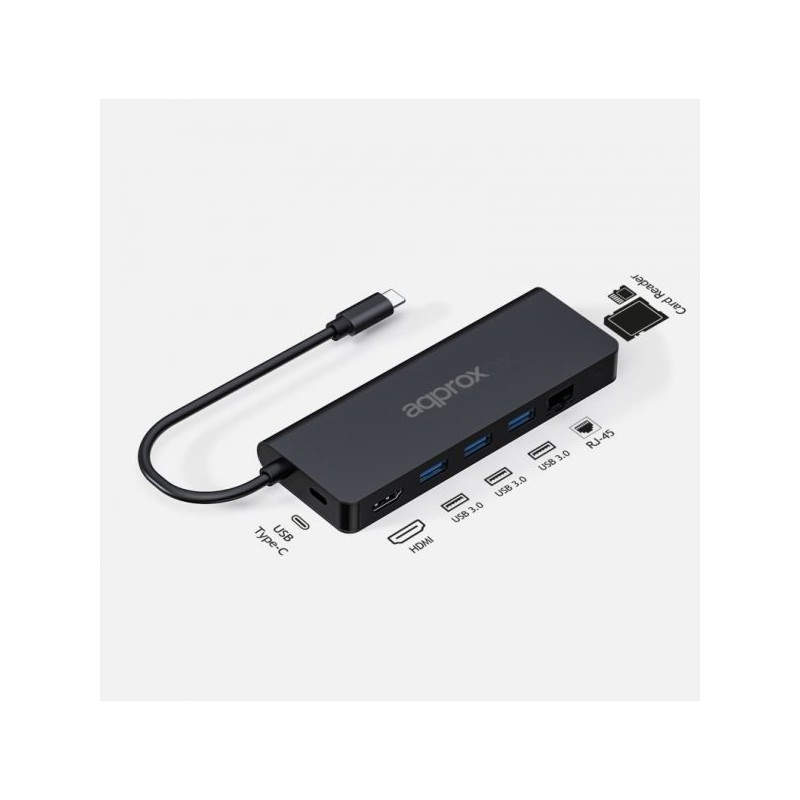 Approx APPC53 hub de interfaz USB 3.2 Gen 1 (3.1 Gen 1) Type-C 1000 Mbit/s Negro