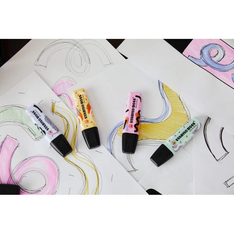 STABILO BOSS ORIGINAL marcador 4 pieza(s) Punta de cincel Azul, Fucsia, Menta, Naranja