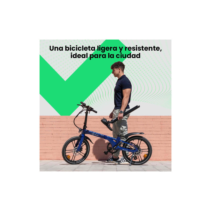 La YOUIN Marbella BK1350 redefine la movilidad urbana con un diseño exclusivo y prestaciones premium. Plegable, ligera y potente, cuenta con un motor trasero de 250W y cambio Shimano Altus de 7 velocidades. Su batería integrada en la tija del sillín es extraíble, permitiendo una carga cómoda y una autonomía realista de hasta 40 km, medida en condiciones urbanas estándar. Con frenos hidráulicos de alto rendimiento, pantalla multifunción, luces LED y un cuadro de aluminio de solo 18,2 kg, esta bicicleta ofrece una experiencia de conducción segura y fluida. Las ruedas de 20” con radios integrados garantizan estabilidad y estilo. Llega premontada al 95%, solo necesitas ajustar manillar y sillín. YOUIN ofrece además una red nacional de talleres con recambios originales, soporte técnico profesional y producción 100% europea. Ideal para quienes buscan una bicicleta eléctrica plegable que combine funcionalidad, diseño y fiabilidad. • Talleres oficiales con recambios en toda España.