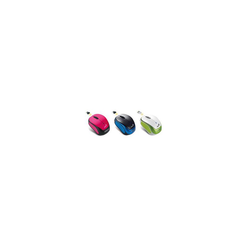 Genius Micro Traveler 9000R. Interfaz del dispositivo: RF Wireless+USB, Tecnología de detección de movimientos: Óptico, Utilizar con: Travel. Color del producto: Negro, Azul, Factor de forma: Ambidextro, Interfaz de receptor inalámbrico: USB. Alcance inalámbrico: 10m. Fuente de energía: Batteries/Cable, Tecnología de batería: Polímero de litio, Vida de batería en servicio: 4 month(s). Ancho: 6,8 cm, Profundidad: 4,8 cm, Altura: 3,1 cm