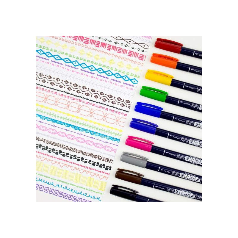 Tombow WS-BH-10P rotulador Fino/Medio Negro, Azul, Verde, Gris, Naranja, Rosa, Amarillo 10 pieza(s)