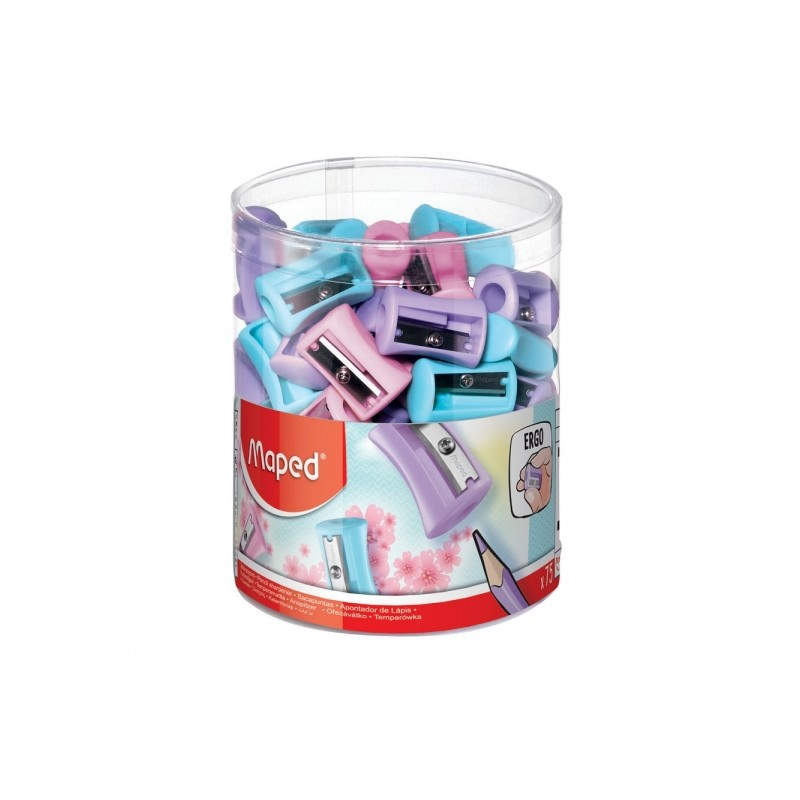 Características Tipo --> Sacapuntas manual Color del producto --> Azul, Rosa, Violeta Material --> Cloruro de polivinilo (PVC) Borrador --> No Tipo de embalaje --> Tubo