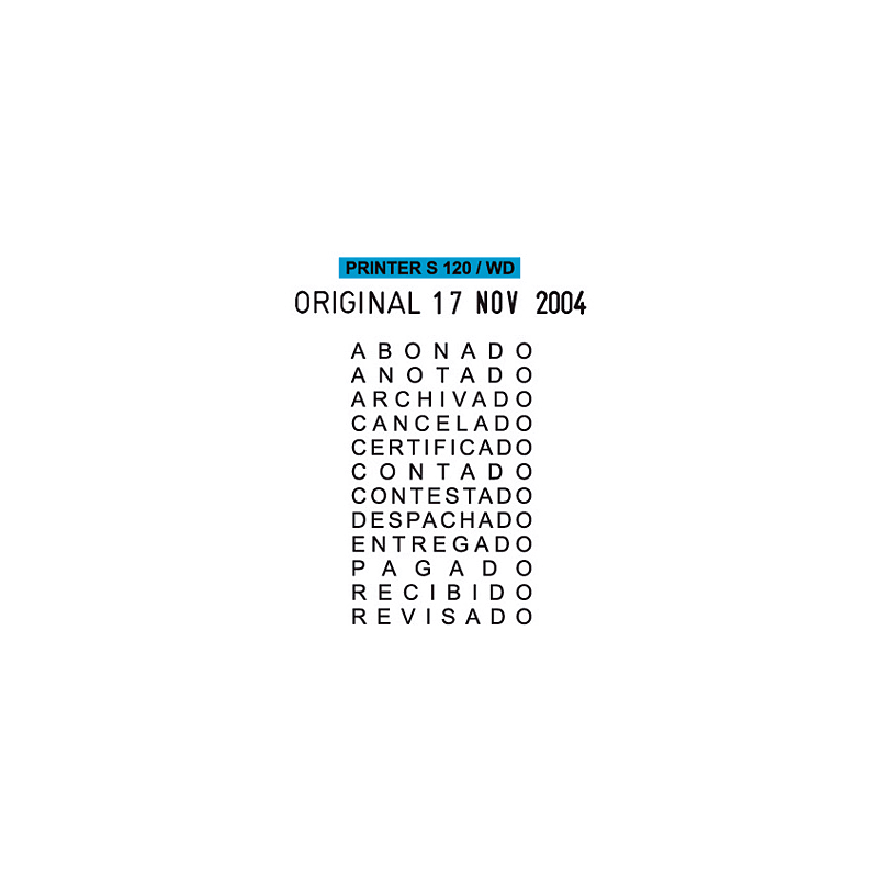 Info general 1 --> SELLO DE ENTINAJE S 120 WD FORMULA FECHA 4MM ESPA?OL AZUL BICOLOR COLOP