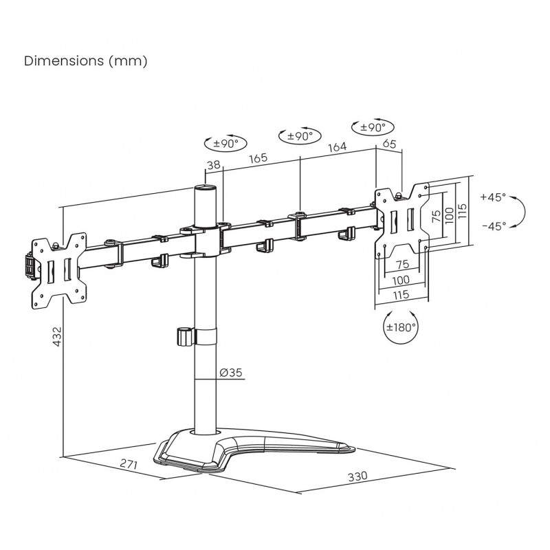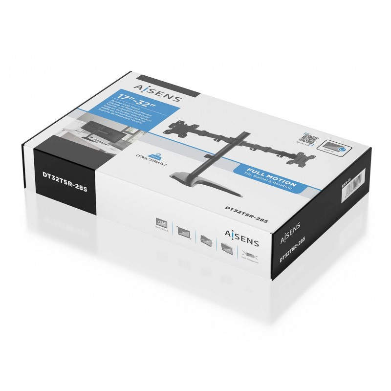 AISENS Soporte de mesa con peana eco giratorio e inclinable para monitor/TV 10kg (3 Pivotes, 2 Brazos) de 17-32, Negro