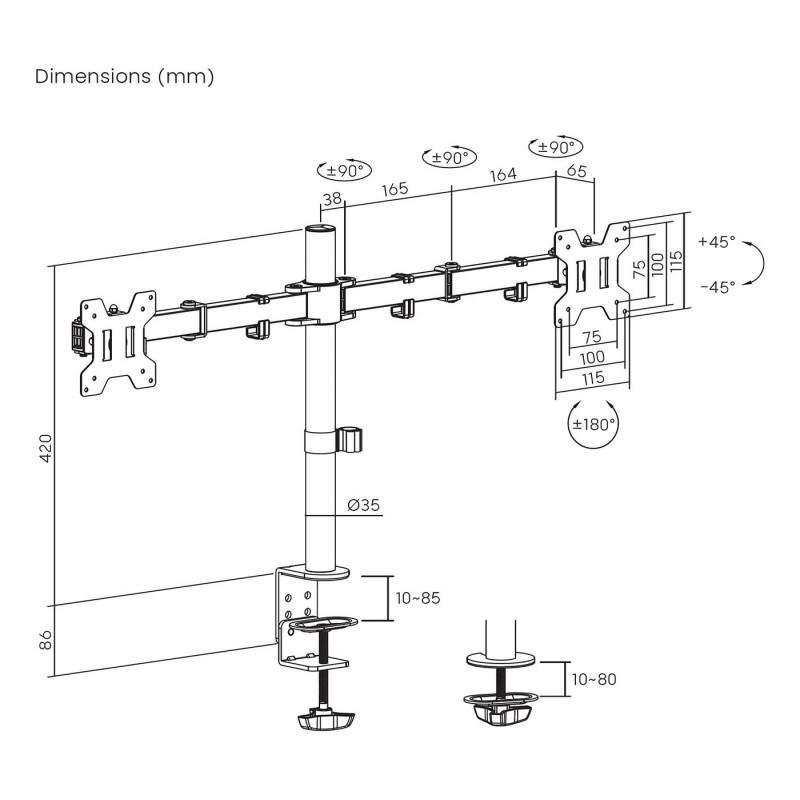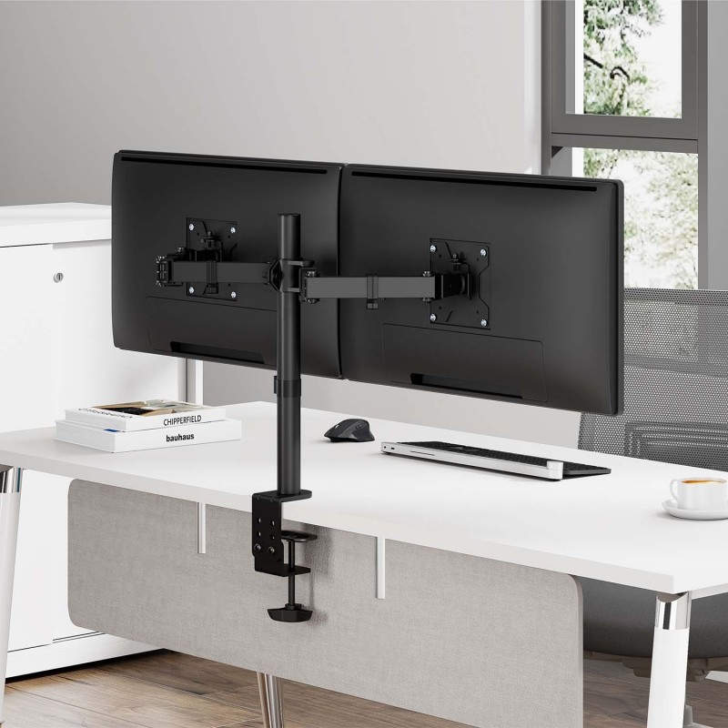 AISENS Soporte de mesa eco giratorio e inclinable para monitor/TV 10kg (3 Pivotes, 2 Brazos) de 17-32, Negro