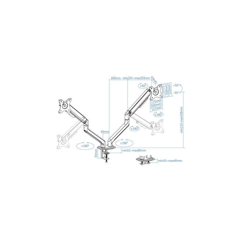 TooQ DB4132TNR-G soporte para monitor 81,3 cm (32'') Abrazadera/Atornillado Negro