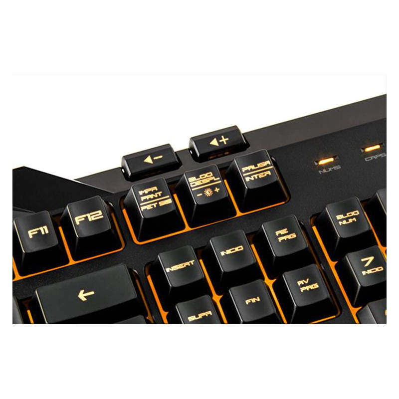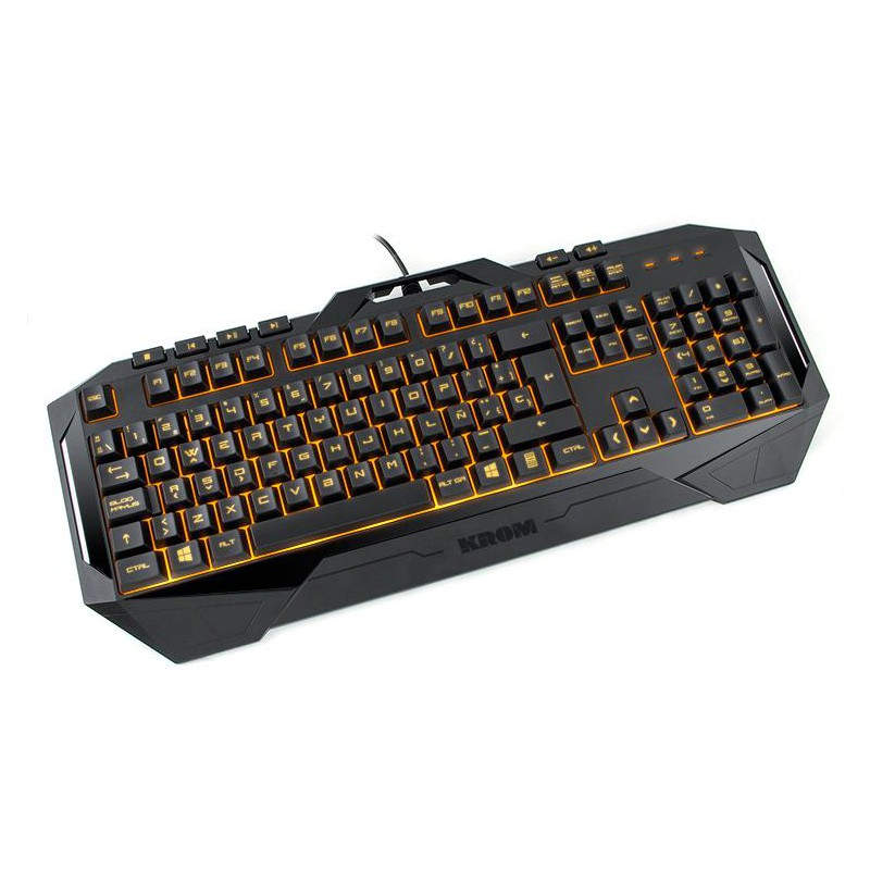 El Kit Kombat de KROM ofrece una iluminación intensa en color naranja que permite obtener un entorno gaming con un look muy agresivo. Su sistema de difusión de luz ofrece una iluminación uniforme en todo el teclado, tanto en la iluminación de cada tecla como el espacio entre ellas. El ratón KM100 posee también este sistema de iluminación, ocasionando una combinación perfecta entre teclado y ratón, el entorno gaming perfecto.