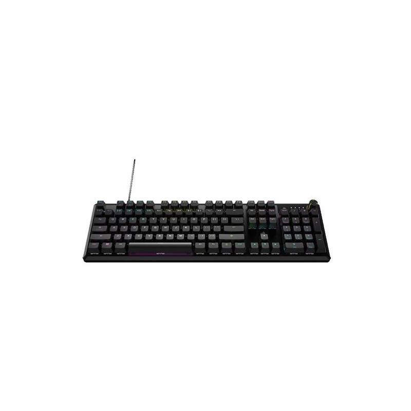 Info general - Alimentación --> Cable - Uso recomendado --> Juego - Interfaz del dispositivo --> USB 3.0 o 3.1 tipo A - Idioma del teclado --> Español - Teclado numérico --> Si - Número de productos incluidos --> 1 pieza(s) - Color del producto --> Negro - Retroiluminación --> Si - Descansa muñecas --> No - Tipo de retroiluminación --> Rgb
