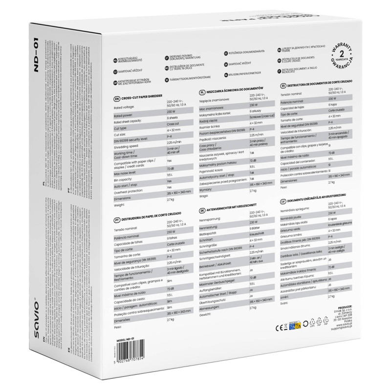 Savio ND-01 triturador de papel Corte cruzado 72 dB Negro