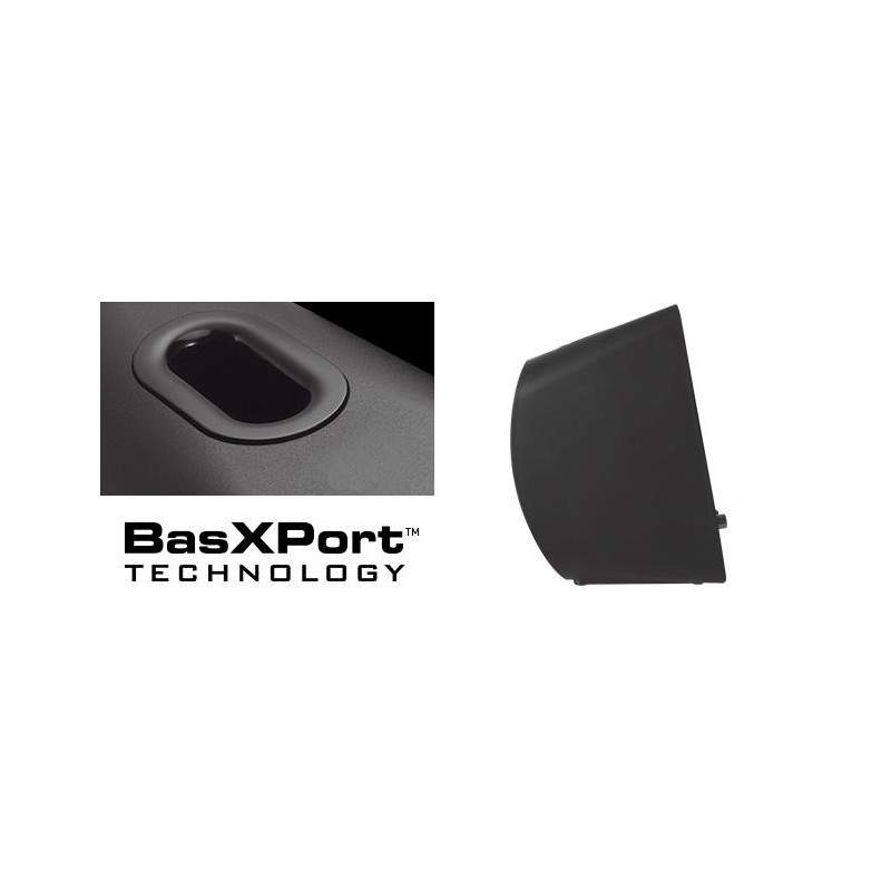Con la tecnología BasXPort? integrada, cada altavoz incorpora un amplio tubo de puerto para canalizar las ondas acústicas desde la cámara interior del satélite hasta el escenario acústico, lo que proporciona unos graves altos. Gracias al diseño posterior curvado de las amplias carcasas acústicas de cada satélite, se minimizan las ondas estacionarias no deseadas y se proporcionan unos tonos medios íntegros con un rendimiento de graves más claro, fuerte y amplio.
