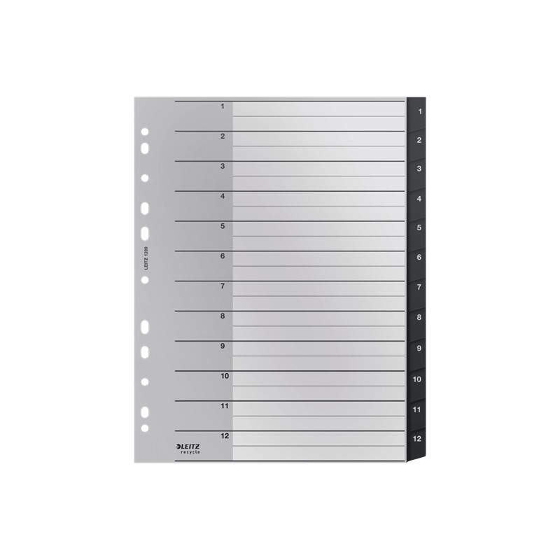 Leitz 12090000 lengüeta de índice Separador en blanco con pestaña Polipropileno (PP) Negro, Blanco