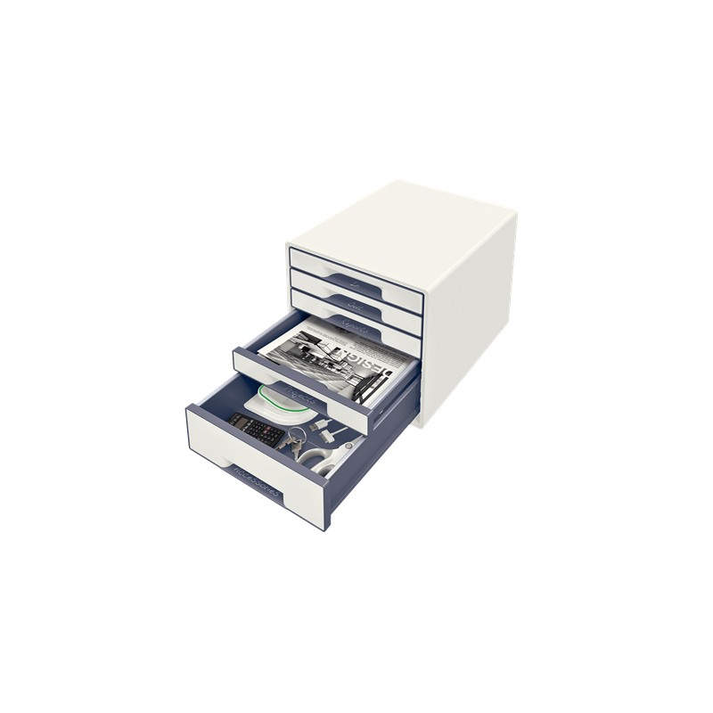 Características Material --> Poliestireno Color del producto --> Blanco ISO tamaño de serie A (A0...A9) --> A4 Número de colores --> 5 cajón(es) Apilable --> Sí Base antideslizante --> Sí