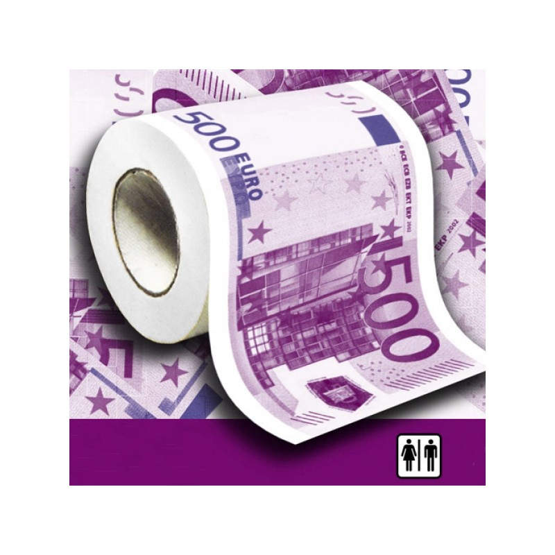 Todos sabemos la crisis en la que estamos inmersos, pero ¿de qué sirve levantarse y acostarse con la sensación de que no salimos de esta ni a la de tres?. Hoy te proponemos el papel higiénico 500 Euros para que al menos te tomes la situación con buen humor. No dejes escapar esta oportunidad y límpiate el culo con suaves billetes de 500 euros. ¡Ya verás qué risas!