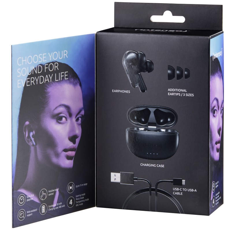 Intenso Black Buds T300A Auriculares Dentro de oído Llamadas/Música/Deporte/Uso diario Negro