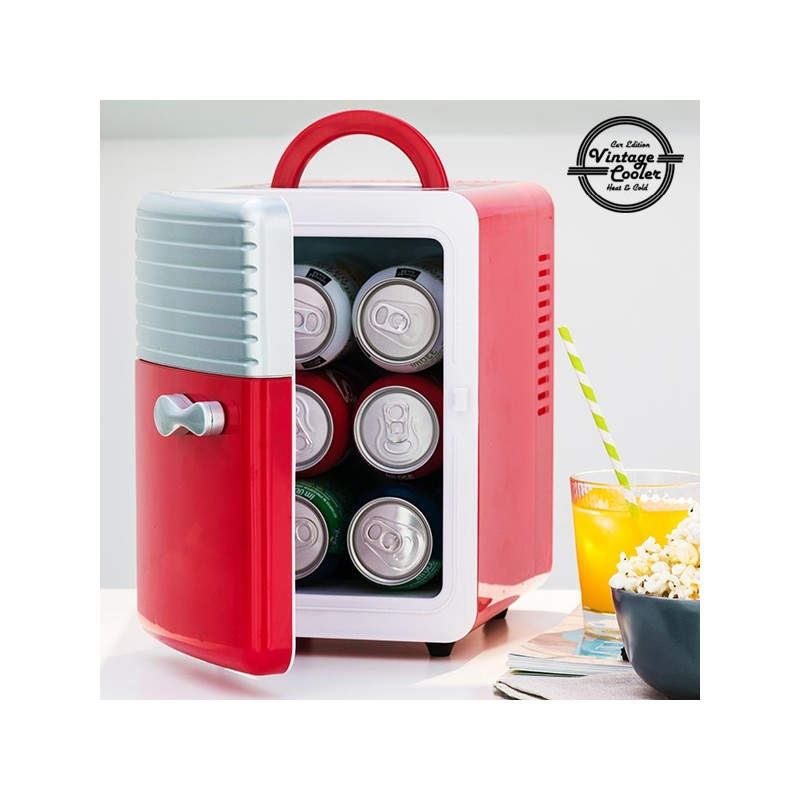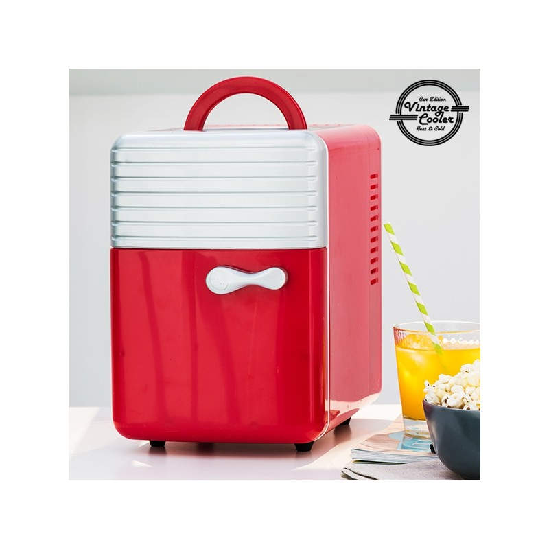 Esta mini nevera retro de estética clásica y llamativo color rojo con detalles metálicos incorpora dos funciones: frío y calor. Podrás poner tus bebidas a enfriar o mantener tus comidas favoritas calentitas con toda comodidad. ¡Sólo tienes que enchufarla! Especialmente diseñado para viajeros, este mini refrigerador vintage es funcional y manejable, e incorpora una pequeña asa en la parte superior para facilitar su transporte.