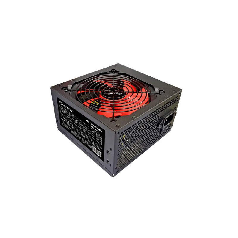 UNYKAch UK52035. Potencia nominal: 600 W, Voltaje de entrada AC: 230 V, Frecuencia de entrada AC: 50 Hz. Diámetro de ventilador: 12 cm, Ubicación de ventilador: Superior, Tipo de enfriamiento: Activo. Alimentador de energía para tarjeta madre: 20+4 pin ATX. Factor de forma: ATX, Utilizar con: PC, Versión ATX: 2.3. Color del producto: Negro, Rojo