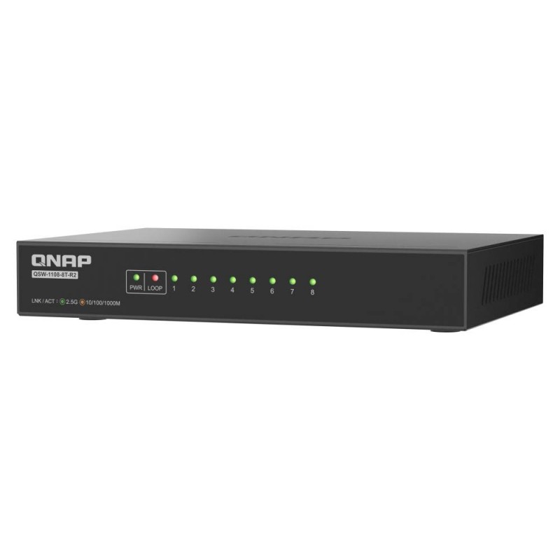 QNAP - QNAP QSW-1108-8T-R2 switch No administrado 2.5G Ethernet (100/1000/2500) Escritorio Negro - QSW-1108-8T-R2