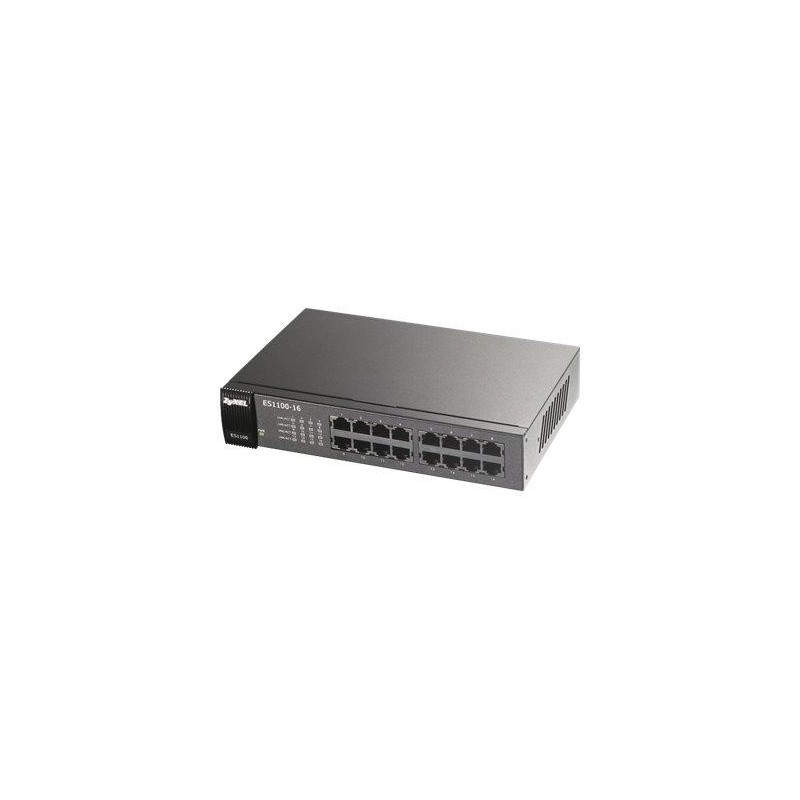 ZyXEL ES1100-16P. Capa del interruptor: L2, Tipo de interruptor: No administrado. Estándares de red: IEEE 802.1p, IEEE 802.3, IEEE 802.3az, IEEE 802.3x. Tasas de transferencia soportadas: 10/100 Mbit/s, Tasa de transferencia (máx): 0,1 Gbit/s. Color del producto: Gris