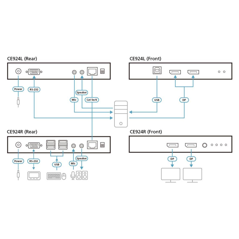 ATEN - ATEN Extensor de KVM USB DisplayPort de vista doble HDBaseT™ 2.0 (4K a 100 m para vista individual) - CE924-AT-G