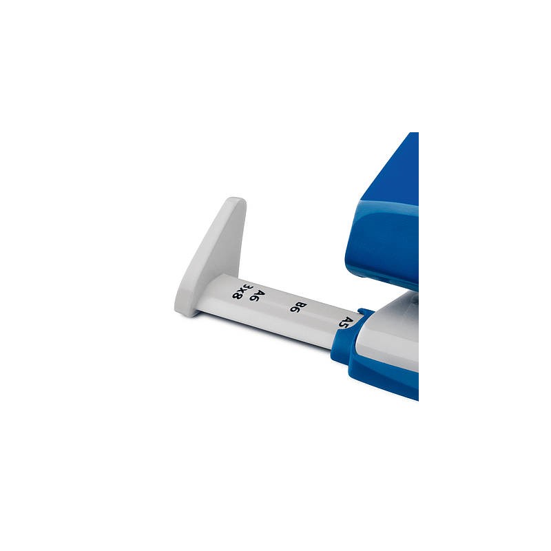 Características Capacidad de perforación --> 16 hojas Color del producto --> Azul Cantidad de huecos perforados --> 2 Distancia de perforación --> 8 cm Diámetro del agujero --> 5,5 mm Barra guía --> Sí Guía de ancho del papel ajustable --> Sí
