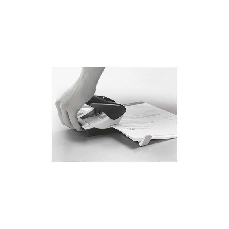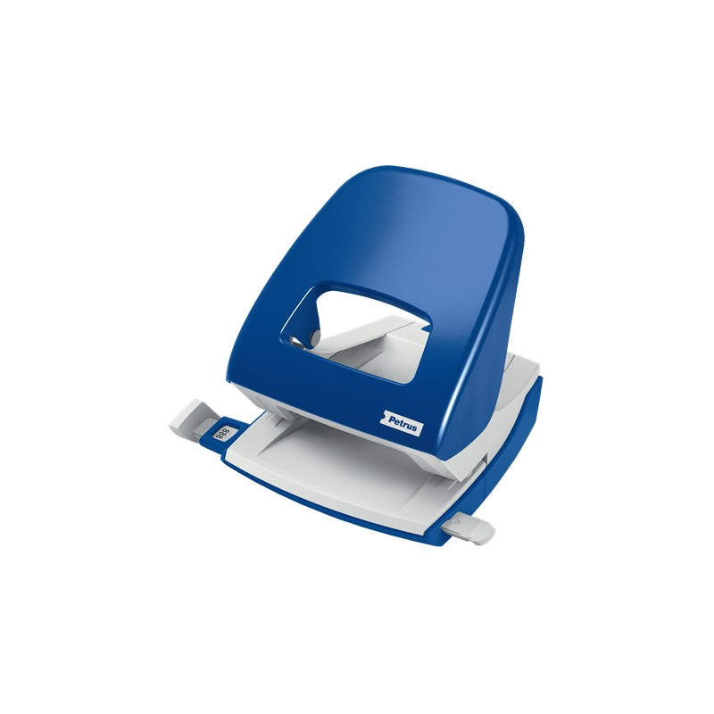 Características Capacidad de perforación --> 30 hojas Color del producto --> Azul, Gris Material --> Metal Cantidad de huecos perforados --> 2 Distancia de perforación --> 8 cm Diámetro del agujero --> 5,5 mm Formato --> A4, A5, A6, Folio, US-Quart, 8 x 8 x 8 cm Guía de ancho del papel ajustable --> Sí