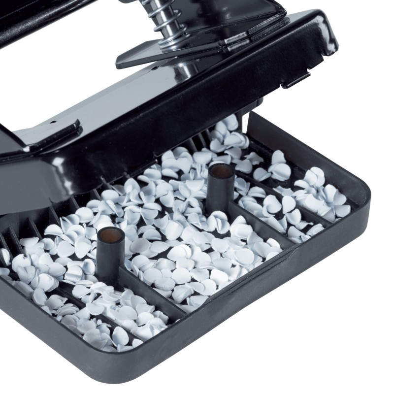 Características Capacidad de perforación --> 20 hojas Color del producto --> Plata, Blanco Material --> Metal, Plástico Cantidad de huecos perforados --> 2 Distancia de perforación --> 8 cm Diámetro del agujero --> 5,5 mm Formato --> A4, A5, A6, Folio, US-Quart, 8 x 8 x 8 cm Fácil de usar --> Sí