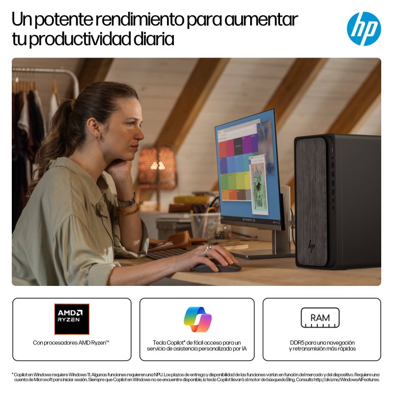 HP OmniDesk Desktop M02-0014ns PC AMD Ryzen™ 5 8500F 16 GB DDR5-SDRAM 1 TB SSD FreeDOS Torre AI PC Negro, Gris