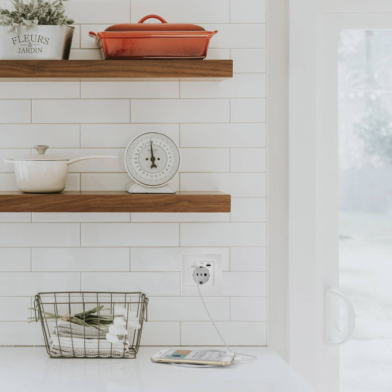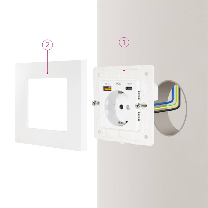 Nanocable Base de enchufe de pared tipo schuko con 1xUSB-A QC 3.0 + 1xUSB-C PD - Max. 3.4A, Blanco