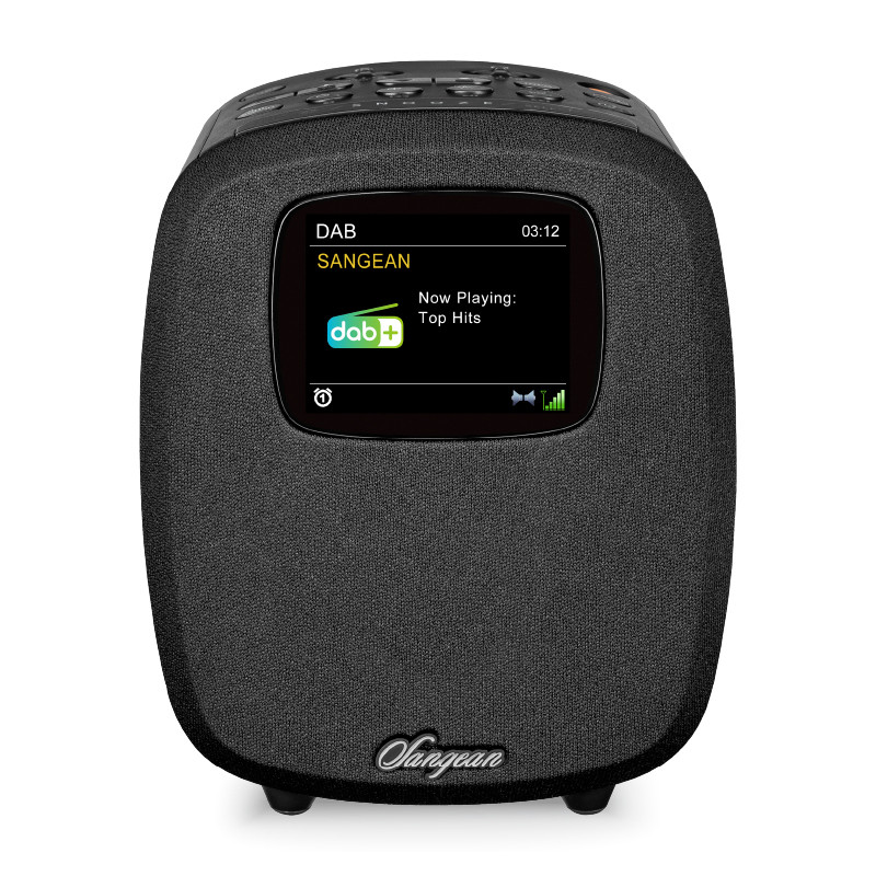 Radio despertador SANGEAN DCR-83 en color negro con memoria para 40 emisoras preseleccionadas, pantalla LCD a color, temporizador de apagado seleccionable, función de repetición de alarma, bluetooth AVRCP integrado (reproducción y pausa), entradas para auriculares, AUX y USB tipo-A, incluye adaptador de corriente