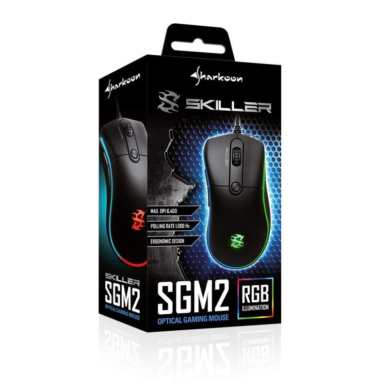 Sharkoon Skiller SGM2 ratón USB Óptico 6400 DPI Negro 4044951021536