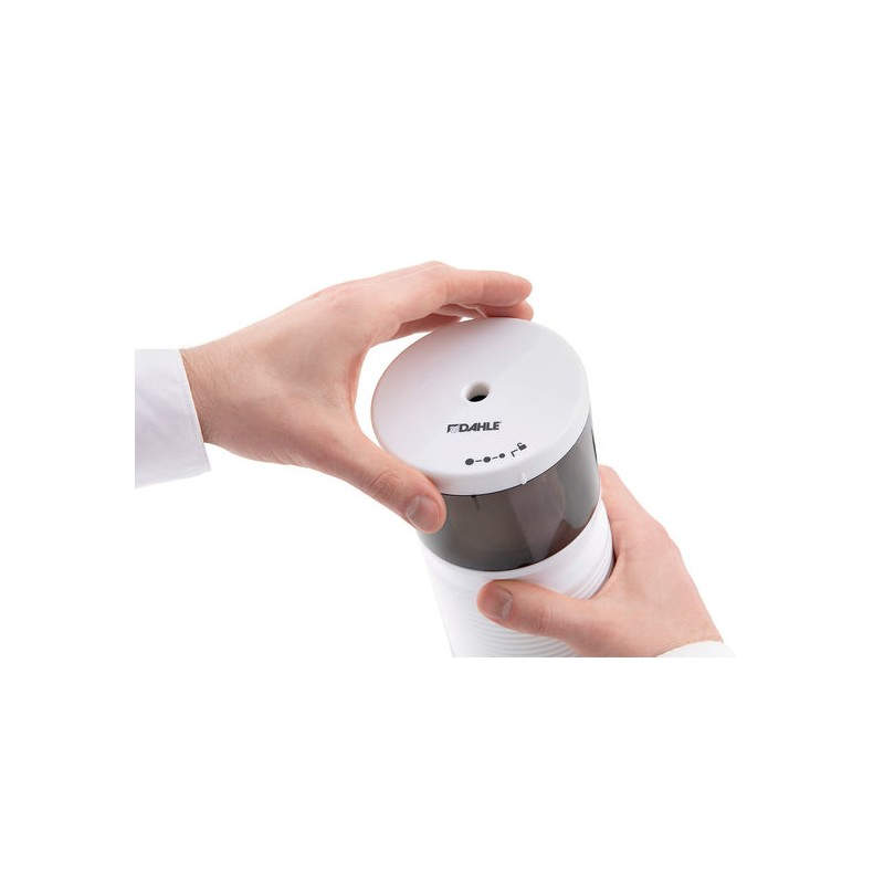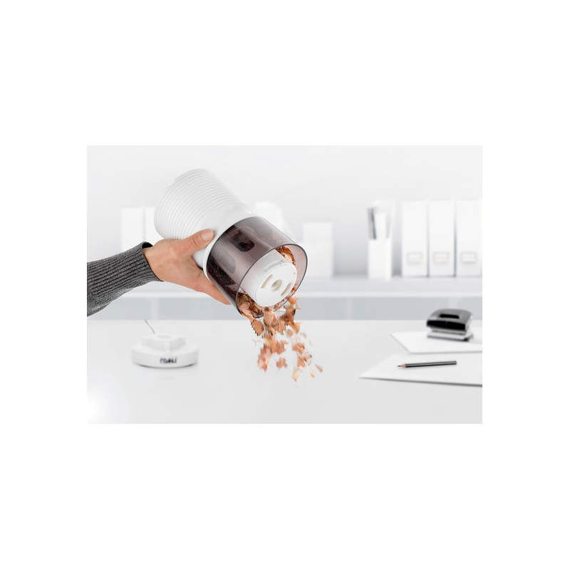 Características Tipo --> Sacapuntas eléctrico Color del producto --> Blanco Material --> Plástico Diámetro del lápiz (máx.) --> 1,1 cm Diámetro del lápiz (mín.) --> 8 mm Recipiente extraíble --> No Forma de la punta ajustable --> Sí Parada de corte automático --> Sí No adecuado para niños de 0 a 3 años --> Sí Certificación --> CE