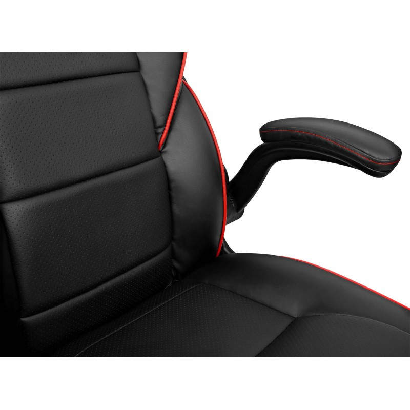 Características Tema --> Racing Tipo de producto --> Silla para videojuegos de PC Peso máximo del usuario --> 150 kg Tipo de asiento --> Asiento acolchado Color del asiento --> Negro, Rojo