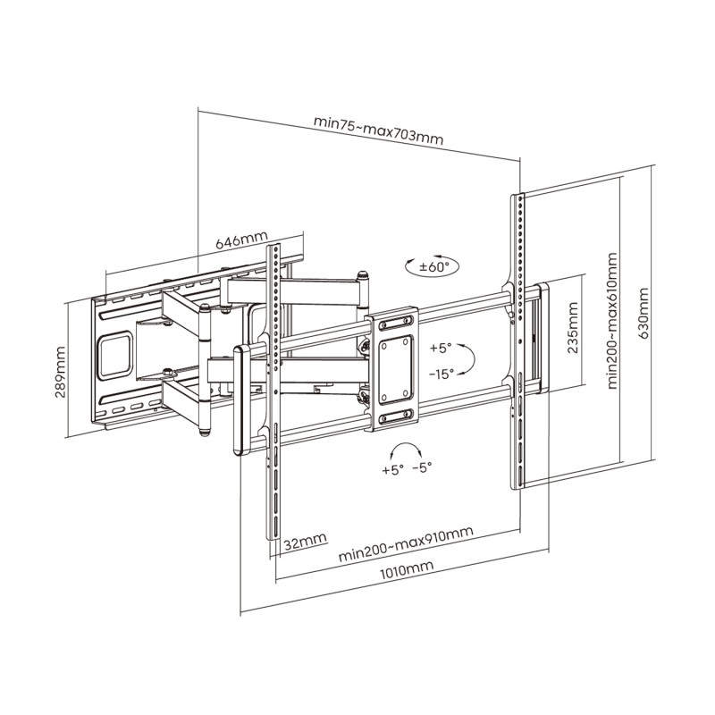 AISENS Soporte Pro Giratorio, Inclinable Y Nivelable Para Monitor/tv 120kg De 60-120, Negro