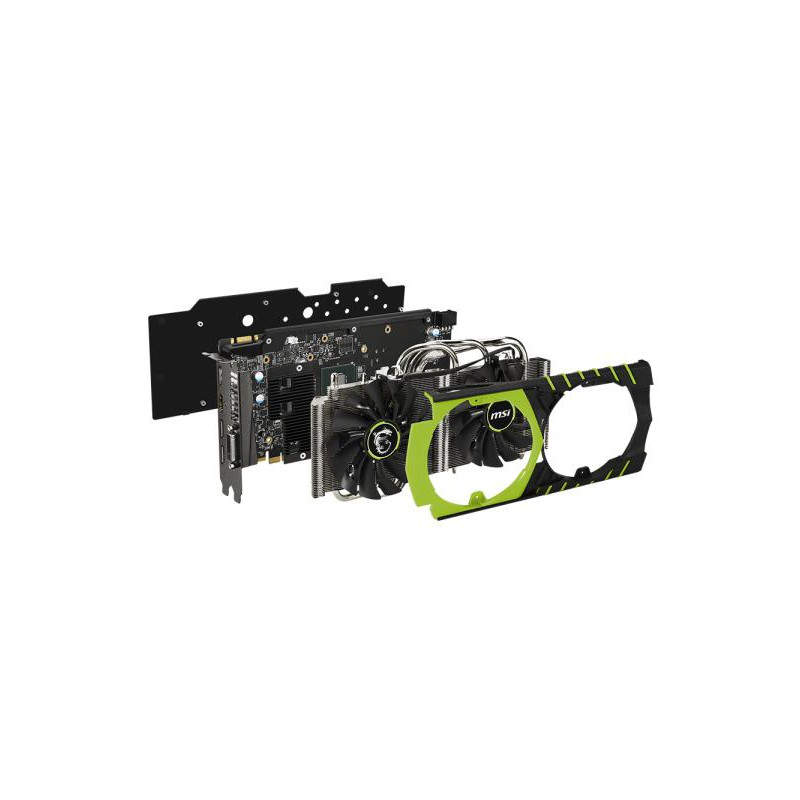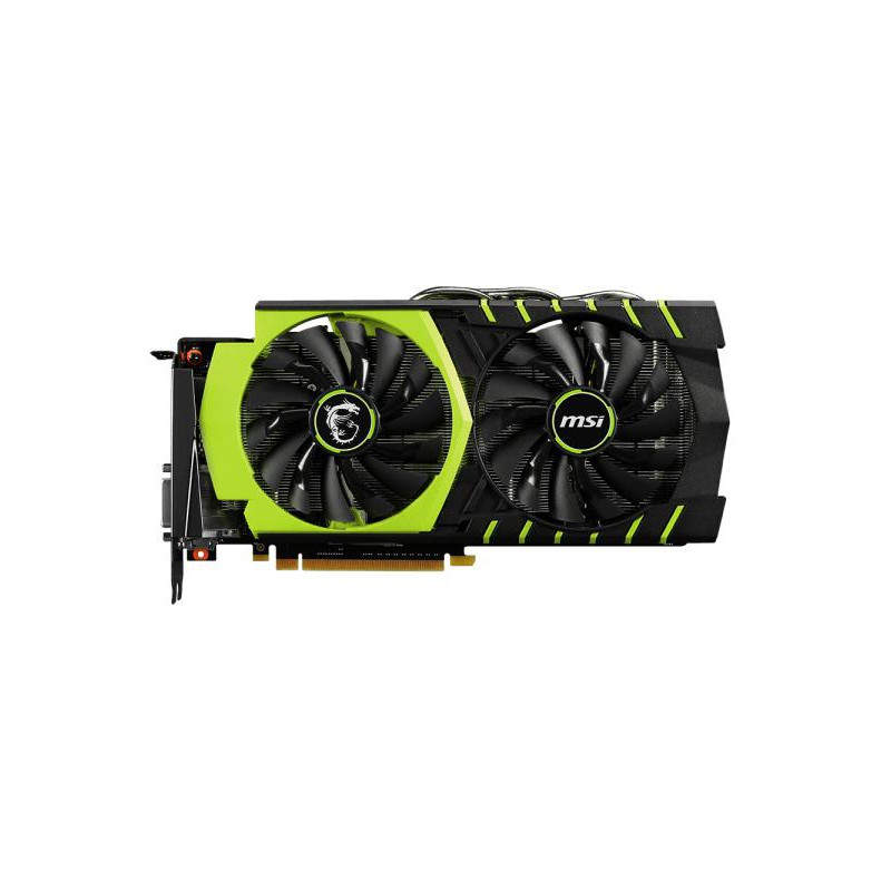 MSI GTX 960 GAMING 100ME. Familia de procesadores de gráficos: NVIDIA, Procesador gráfico: GeForce GTX 960, Máxima resolución: 4096 x 2160 Pixeles. Gráficos discretos memoria del adaptador: 2 GB, Tipo de memoria de adaptador gráfico: GDDR5-SDRAM, Ancho de datos: 128 Bit. Tipo de interfaz: PCI Express x16 3.0, Versión HDMI: 2.0, Versión de DisplayPort: 1.2. Versión DirectX: 12.0, Versión OpenGL: 4.4. Tipo de enfriamiento: Activo, Color del producto: Negro, Verde