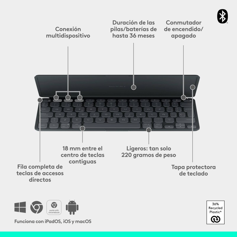 Dimensiones de teclado (Ancho x Profundidad x Altura) --> 105 x 4,35 x 250 mm