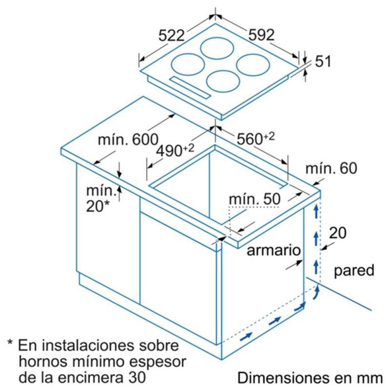 Ancho de compartimiento de instalación --> 56 cm