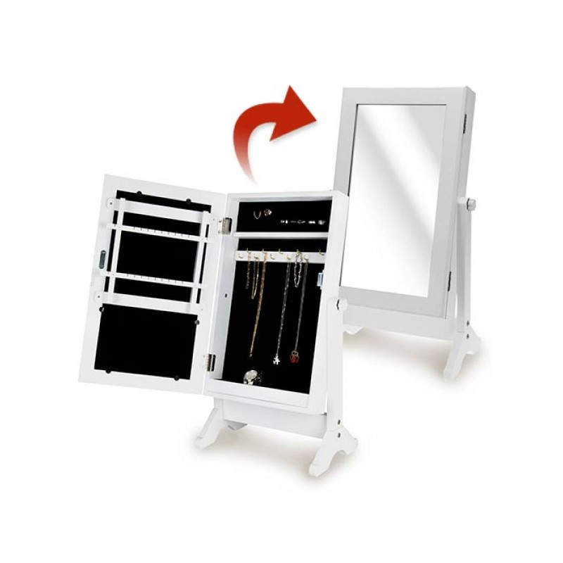 El estupendo espejo joyero sobremesa es sin duda la mejor opción para mantener tus joyas y bisutería bien guardadas y perfectamente ordenadas (anillos, pulseras, pendientes, collares, etc.). Se trata de un armario joyero con espejo en la puerta, que te será de gran utilidad con su doble función. Su diseño es muy atractivo y elegante, por lo que quedará perfecto sobre el tocador de tu dormitorio o en lugar que desees. Es ideal para regalar. El espejo joyero sobremesa es muy fácil de montar, en unos instantes lo podrás lucir en tu hogar (incluye llave Allen y tornillos para el montaje).