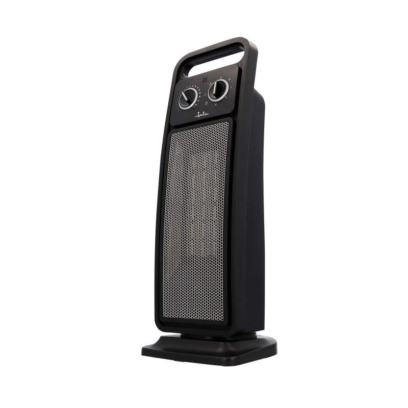 Categoria sin clave 4 --> Elemento calefactor cer?mico PTC. Mayor rendimiento.Selector rotativo:- ventilaci?n- calor medio- calor m?ximo? funci?n oscilante.Dispositivo de seguridad antivuelco.2 potencias de calor: 1.400 ? 2.000 W.Termostato regulable de temperatura ambiente.Sistema Super Silence de Jata de 55 dB.Protecci?n contra sobrecalentamiento.Indicador luminoso.Asa de transporte.Medidas: 18 × 19 x 51 cm.Voltaje 230 V.Potencia 2.000 W.