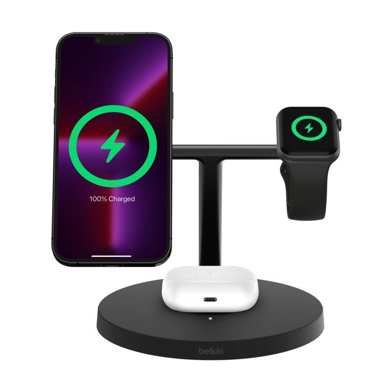 Belkin BoostCharge Pro Auriculares, Smartphone, Reloj inteligente Negro USB Cargador inalámbrico Carga rápida Interior