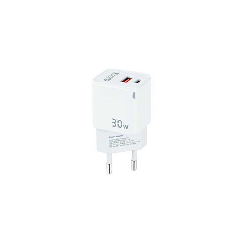 CARGADOR DOBLE USB-C + USB A TOOQ BLANCO