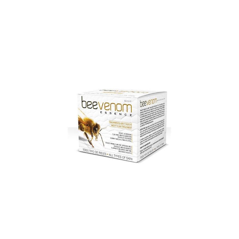 Comprar Crema Veneno de Abeja Bee Venom Essence 50 ml al mejor precio. El veneno de la abeja sintetizado, la cera de abejas y los extractos de propolis, jalea real, polen y miel, reafirman las microarrugas, estimulan el metabolismo celular, hidratan, acondicionan, suavizan, regeneran y nutren los tejidos. En definitiva, su acción antioxidante y anti-envejecimiento revitaliza y purifica el cutis y el cuello. Bee Venom Essence es ideal como crema de base de día y tratamiento por la noche para pieles maduras, sensibles, grasas y con impurezas.