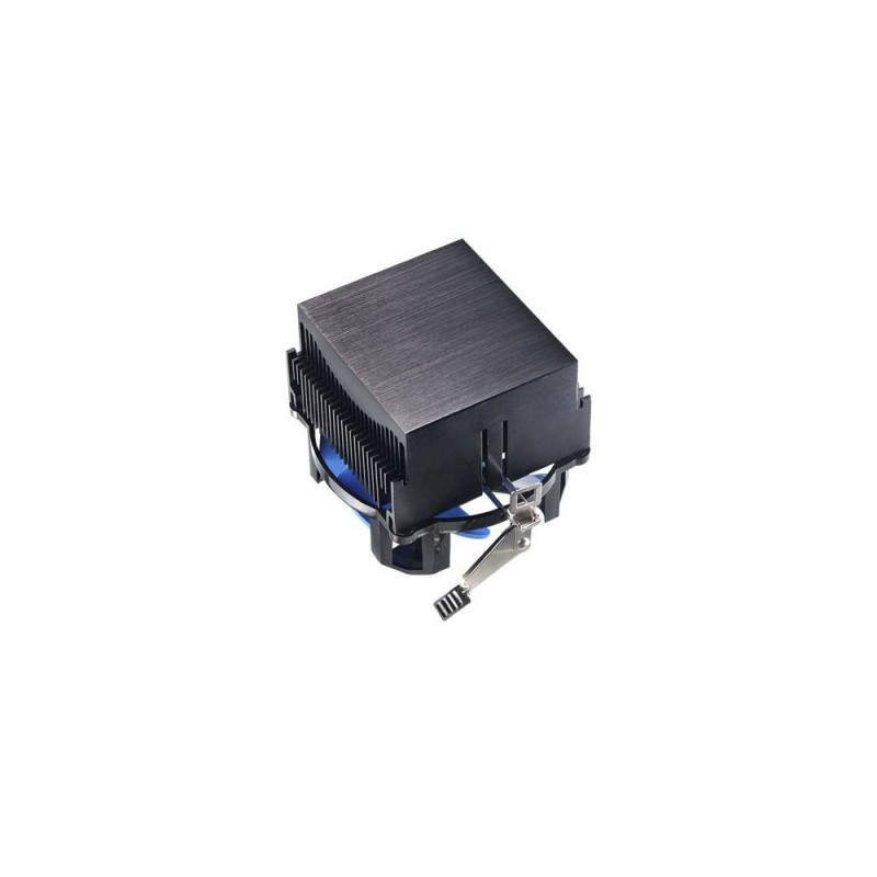 Cooler para CPU compatible con socket AMD. Incluye un ventilador de 92 mm con aspas en color azul.