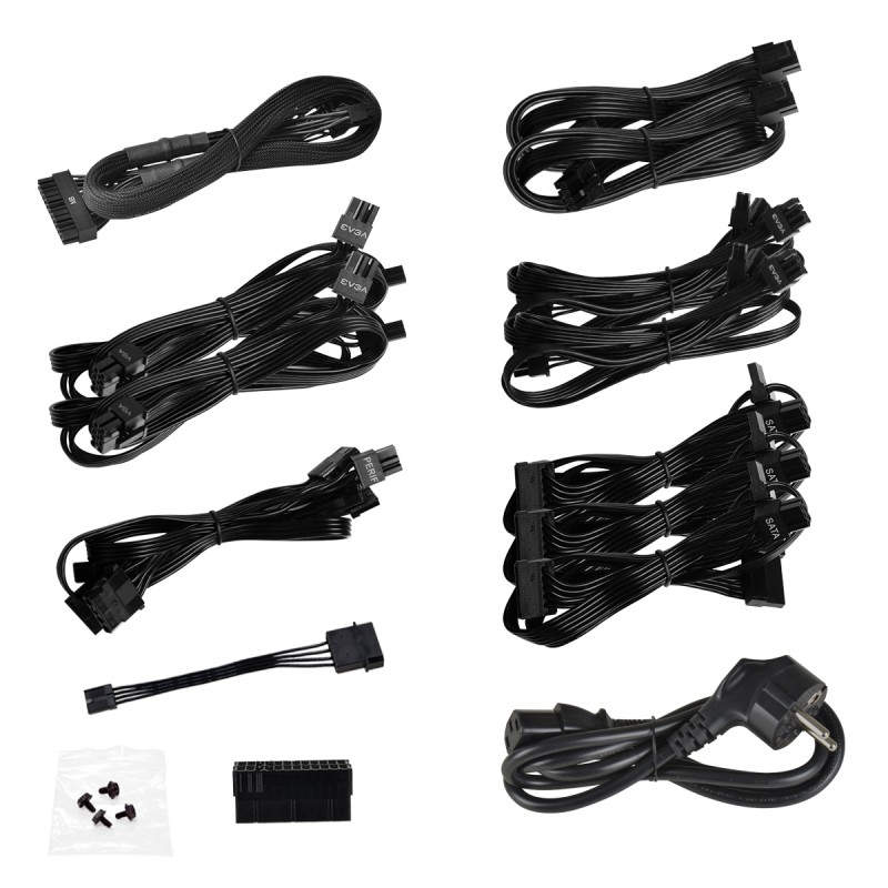 Cables incluidos --> Corriente alterna, CPU, PCIe, Peripheral (Molex), SATA