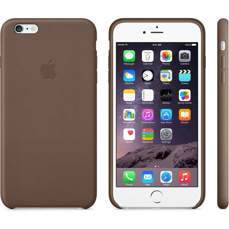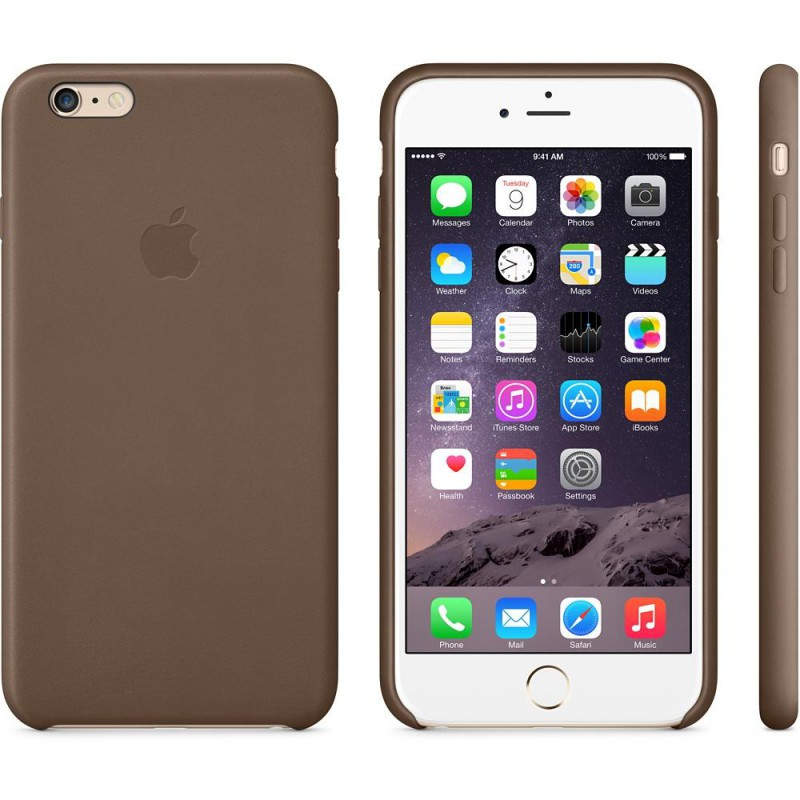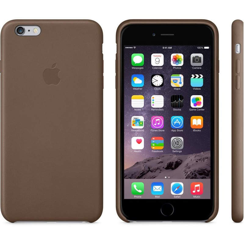 Funda de piel para el iPhone 6 Plus, Marrón oliva Estas fundas diseñadas por Apple están fabricadas en piel de primera calidad y son tan agradables a la vista como al tacto. Y como están hechas a medida para el iPhone 6 Plus, tu teléfono seguirá siendo increíblemente fino tanto con la funda como sin ella. El suave interior de microfibra protege el acabado de tu iPhone. El color del exterior no es un mero pigmento superficial, sino que impregna toda la piel. Tienes cinco colores para elegir. Y todos combinan con tu nuevo iPhone.