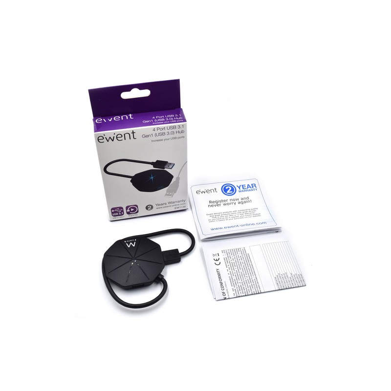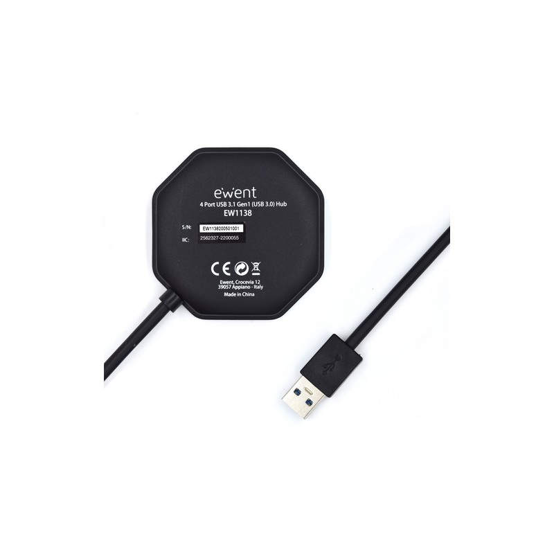Ewent EW1138 hub de interfaz USB 3.2 Gen 1 (3.1 Gen 1) Type-A 5000 Mbit/s Negro