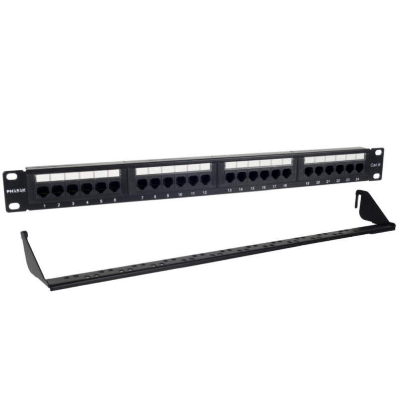Phasak Patch panel 19'' 24P Cat.6 UTP RJ45 DUAL 1U + Organizador - PU 2424