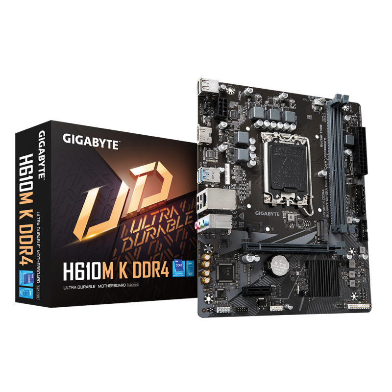 Gigabyte H610M K DDR4 1.0, Intel, LGA 1700, Intel® Celeron®, Intel® Core? i3, Intel® Core? i7, Intel® Core? i9, Intel® Pentium® Gold, DDR4-SDRAM, 64 GB, DIMM